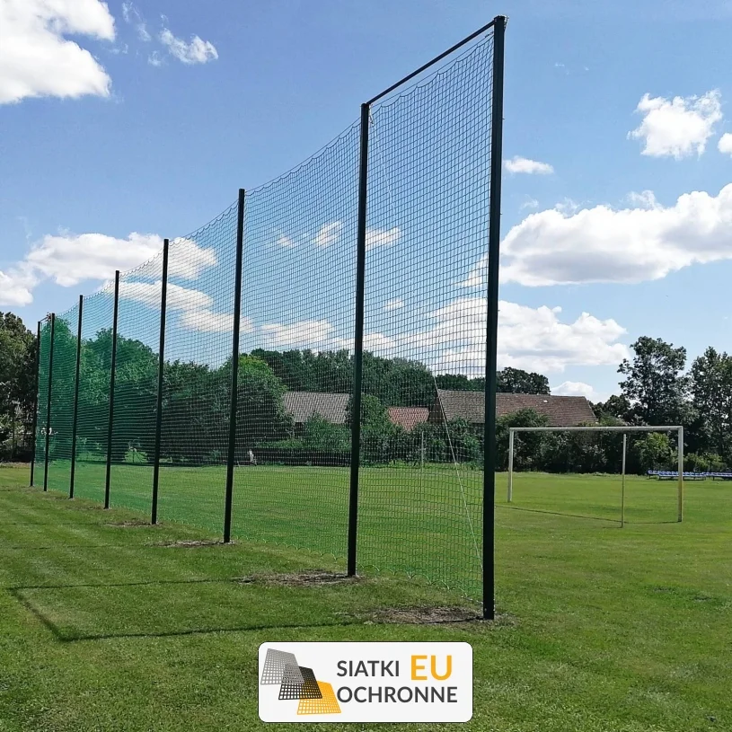 Siatka piłkochwytowa o oczku 10x10cm i grubości 6mm z słupami — Siatka sznurkowa dostosowana do potrzeb użytkownika — Siatka zabezpieczająca dla amatorskich i profesjonalnych boisk