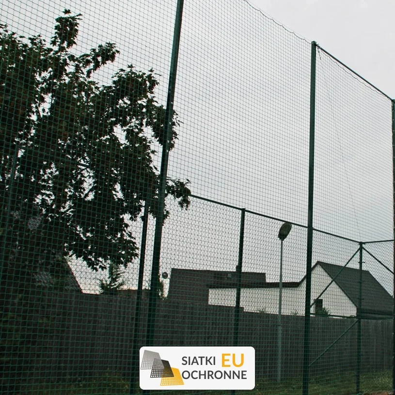 Słupy z siatką o oczku 8x8cm i grubości 6mm, idealne do zatrzymania piłki
