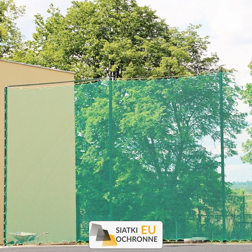 Słupki z siatką o oczkach 8x8cm i grubości 6mm, o wysokości 4 metry — Siatka zabezpieczająca na słupkach 4 metry — Siatka ochronna o grubości 6mm na słupkach 4m