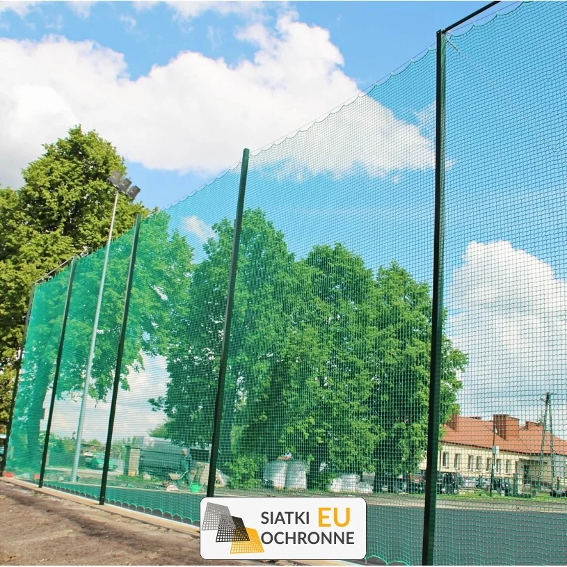 Siatka sznurkową 6x6cm o grubości 4mm z 5-metrowymi słupami do piłkochwytu — Sznurkowa siatka ochronna w wymiarach do austowania — 4mm siatka zabezpieczająca na 5-metrowych słupach